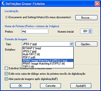 Seleccione PRINT Image Matching II para a definição Tipo relativa ao Formato de Imagem.