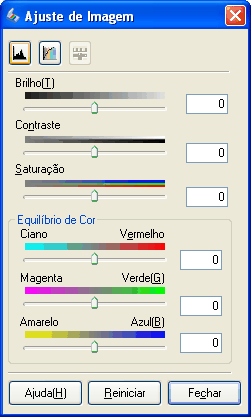 Pode realçar as cores de uma imagem digitalizada ajustando o brilho, o contraste ou o equilíbrio das cores. Execute as operações apresentadas em seguida.