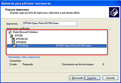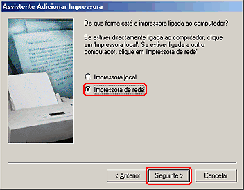 Seleccione Impressora de rede e, em seguida, faça clique em Seguinte.