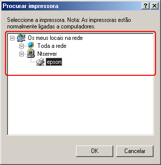 Em Windows 2000, seleccione Impressora de rede e faça clique em Seguinte.
