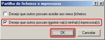 Seleccione a caixa de verificação Desejo que outros possam imprimir na(s) minha(s) impressora(s) e faça clique em OK.
