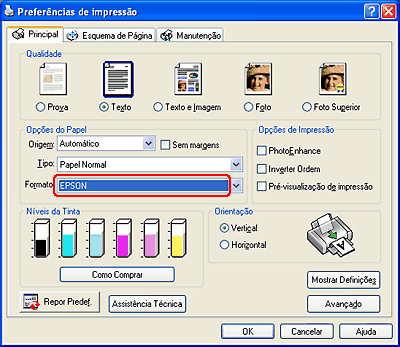 Pode definir um formato de papel personalizado e adicioná-lo à lista.