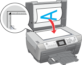 Abra a tampa do digitalizador. Coloque o documento original no vidro de digitalização com a face a ser digitalizada voltada para baixo. Certifique-se de que o documento está correctamente alinhado.