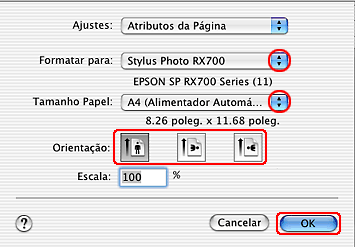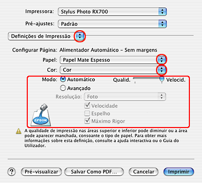 Seleccione Stylus Photo RX700 para a definição Impressora.