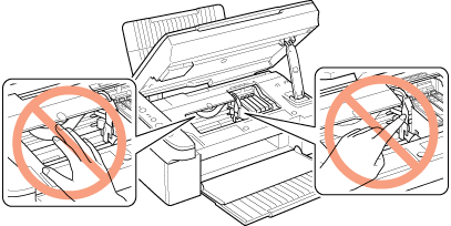 Não desloque a cabeça de impressão com as mãos, pois pode danificar a impressora. Pressione sempre a tecla Stop para a deslocar.