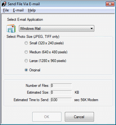 A caixa situada na parte inferior da janela apresenta informações sobre os ficheiros de imagem que está a anexar à mensagem de correio electrónico.
