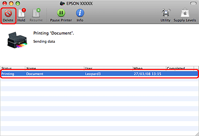 Faça clique na tecla Delete (Apagar) para cancelar a tarefa de impressão.