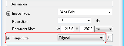 Pode digitalizar as imagens com o tamanho original ou reduzi-las e ampliá-las enquanto as digitaliza. Para o fazer, utilize a definição Target Size (Tamanho do Alvo).