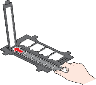 Insira o suporte para películas no interior da tampa do digitalizador.