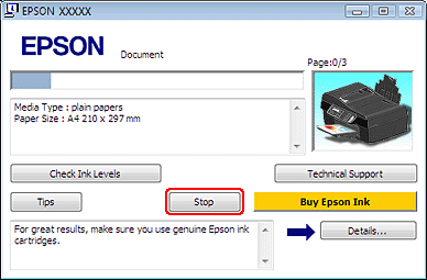 Faceţi clic pe butonul Stop pentru a anula tipărirea.