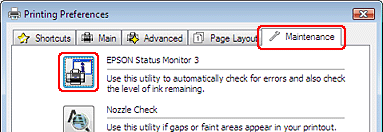 Consultaţi Folosind comanda rapidă de pe taskbar (bara de activităţi) pentru adăugarea pictogramei unei comenzi rapide în Windows taskbar (bara de activităţi).Deschideţi driverul imprimantei, faceţi clic pe fila Maintenance (Întreţinere), apoi pe butonul EPSON Status Monitor 3.