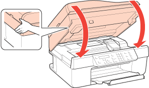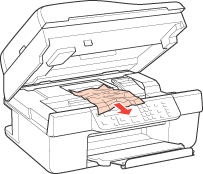 ![]() Dacă hârtia este blocată în apropierea alimentatorului din spate sau a tăvii de evacuare, scoateţi cu atenţie hârtia.