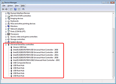 ![]() Dacă se listează USB Universal Host Controllers (Controlere Magistrală serială universală) şi USB Root Hub, Windows acceptă portul USB.