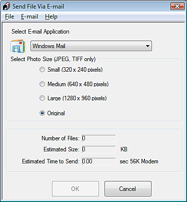 După ce scanarea s-a încheiat, apare fereastra Send File Via E-mail.