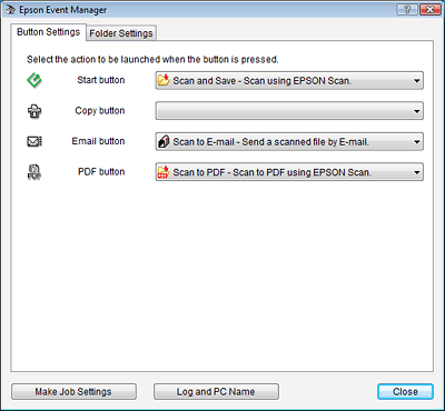 Se va afişa fereastra Button Settings (Setări butoane) din Epson Event Manager.
