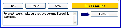 SugestiiSugestiile pentru eficientizarea utilizării driverului imprimantei Epson sunt afişate în caseta de text a ferestrei indicatorului de progres. Este afişată o nouă sugestie la fiecare 30 de secunde. Pentru detalii suplimentare privind sugestia afişată în fereastră, efectuaţi clic pe butonul Details (Detalii).