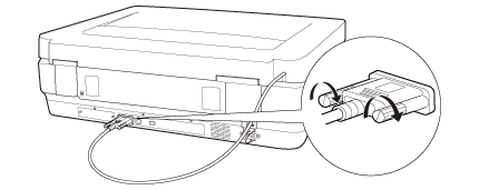 Cuplaţi conectorul Unitate de transparenţă la conectorul pentru unităţi opţionale din partea posterioară a scannerului.