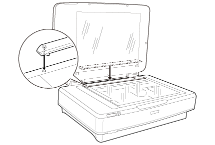 Îndepărtaţi suportul pentru documente reflective din Unitate de transparenţă, aşa cum se arată mai jos.