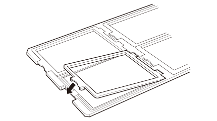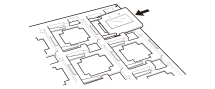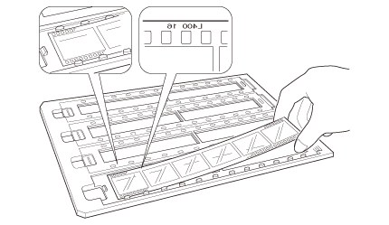 Încărcaţi diapozitivele, cu faţa în jos, în suportul pentru Diapozitive montate, aşa cum se arată mai jos. Repetaţi acest proces pentru toate diapozitivele pe care doriţi să le scanaţi.