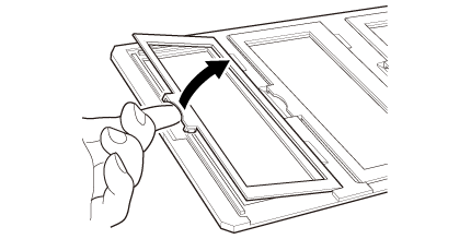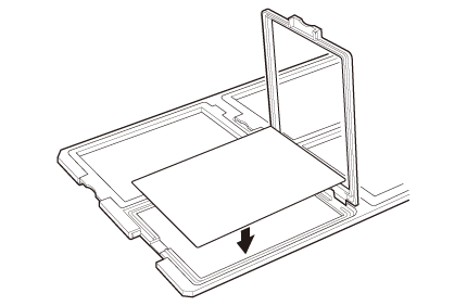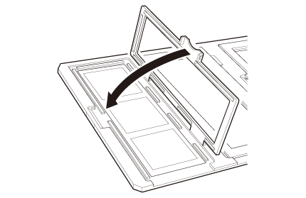 Aşezaţi suportul pentru filme de 10,16 cm x 12,70 cm inch pe o suprafaţă plană şi apoi deschideţi un capac.