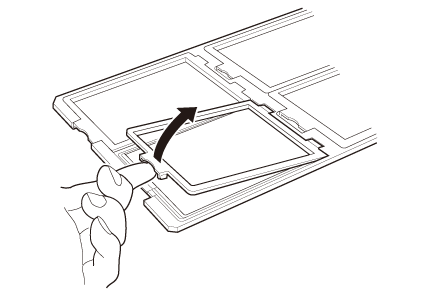 Aşezaţi suportul pentru Format mediu pe o suprafaţă plană şi apoi deschideţi un capac pentru bucăţi de film.