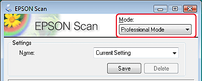 Porniţi Epson Scan şi apoi selectaţi opţiunea Professional Mode (Mod profesional).