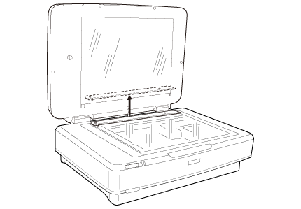 Pentru a scana documente reflective folosind Unitate de transparenţă, introduceţi întotdeauna suportul pentru documente reflective inclus împreună cu această unitate. De asemenea, asiguraţi-vă că îndepărtaţi ghidul unităţii de transparenţă de pe masa de documente a scannerului.
