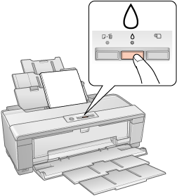 Apăsaţi şi menţineţi apăsat butonul pentru cerneală  timp de trei secunde.