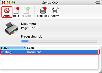 Efectuaţi clic pe butonul Delete (Ştergere) pentru anularea tipăririi.