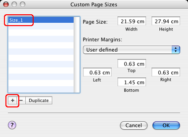 Для дублирования зарегистрированного размера бумаги, выберите в списке название размера бумаги и щелкните Duplicate.
