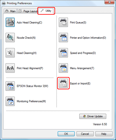 Щелкните вкладку Utility (Сервис) и затем щелкните Export or Import (Экспорт или импорт).