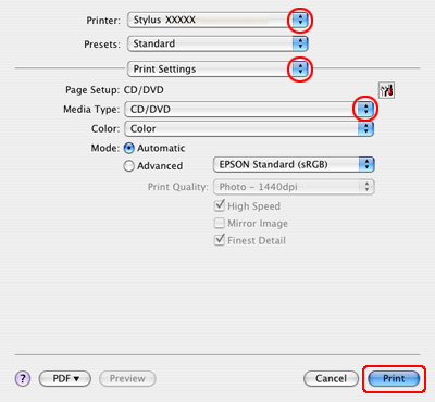 Печать на CD/DVD-дисках в Mac OS X