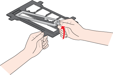 Задвиньте держатель пленок в крышку сканера.
