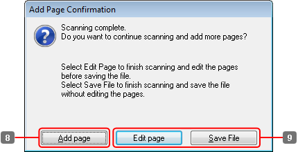 Щелкните данную кнопку если вы хотите удалить или переформировать какие-либо страницы. Используя инструменты в нижней части окна Editing Page (Редактирование страницы) вы можете выбирать нужные страницы, поворачивать и удалять их, а также изменять порядок их расположения. Подробнее об Epson Scan см. в Справке.
