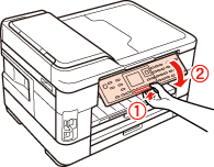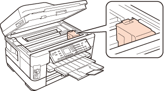 Проверьте, что крышка автоподатчика закрыта. Поднимите сканирующий блок и убедитесь, что печатающая головка находится справа, в обычном положении.