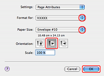 Vyberte používanú tlačiareň ako nastavenie Printer (Tlačiareň), a potom vyberte vhodnú veľkosť obálok ako nastavenie Paper Size (Veľkosť papiera). Máte možnosť zadať aj vlastnú veľkosť obálky. Podrobnosti nájdete v on-line pomocníkovi.