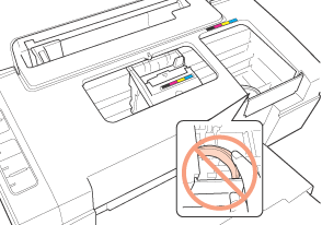 Ak indikátor atramentu  bliká alebo je zapnutý po presunutí držiaka atramentových kaziet do základnej polohy, atramentová kazeta asi nie je nainštalovaná správne. Znova stlačte tlačidlo atramentu  a zatlačte na kazetu, aby zacvakla na svoje miesto.