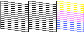 Ak chýba akýkoľvek segment vytlačených čiar, ako je zobrazené nižšie, môže to znamenať upchatú atramentovú trysku alebo nezarovnanú tlačovú hlavu.