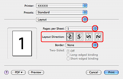 Vyberte niektoré z nasledujúcich nastavení pre tlač pomocou položky Pages Per Sheet (Strany na list):