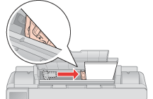 Posuňte ľavú postrannú vodiacu lištu oproti ľavému okraju papiera, ale nie príliš tesne. Uistite sa, že zapadá pod šípku vo vnútri ľavej postrannej vodiacej lišty.
