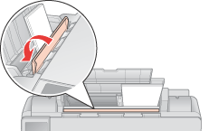 Otvorte podperu papiera, potom otočte vodidlo podávača smerom dopredu.