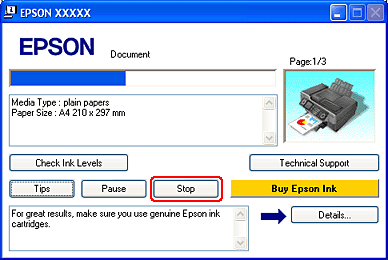 Tlač zrušíte kliknutím na tlačidlo Stop (Zastaviť).