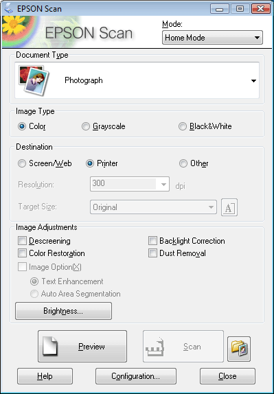 Kliknutím na tlačidlo Preview (Ukážka) zobrazte ukážku svojho obrázka (obrázkov). Objaví sa okno Preview (Ukážka) a zobrazí sa obrázok. Podrobné informácie nájdete v časti Zobrazenie ukážky a úprava oblasti skenovania.
