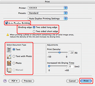 Vyberte jedno z nastavení Select Document Type (Vyberte typ dokumentu). Týmto sa automaticky nastaví Print Density (Hustota tlače) a Increased Ink Drying Time (Zvýšený čas schnutia atramentu).
