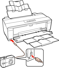 Ak fotoaparát nie je kompatibilný s formátom PictBridge, indikátor a indikátor budú rýchlo blikať. Spoločnosť Epson nemôže zaručiť kompatibilitu s akýmkoľvek fotoaparátom.