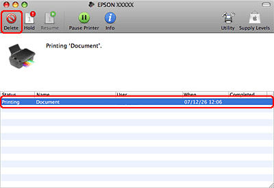 Tlač zrušíte kliknutím na tlačidlo Delete (Odstrániť).