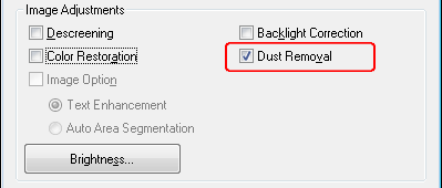 Odstranjevanje prašnih točkS funkcijo Dust Removal v Epson Scan lahko med optičnim branjem virtualno “očistite” prašne točke na originalnih fotografijah.