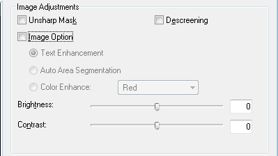 Te nastavitve so na voljo pri naslednjih pogojih: - ko je Image Type nastavljen na Color - ko je Image Type nastavljen na Grayscale - ko izberete Magazine kot Document Type, je Image Type nastavljen na Black&White in sta izbrana Image Option in Auto Area Segmentation - ko izberete Newspaper kot Document Type, je Image Type nastavljen na Black&White in sta izbrana Image Option in Auto Area Segmentation - ko izberete Text/Line Art kot Document Type, je Image Type nastavljen na Black&White in sta izbrana Image Option in Auto Area Segmentation