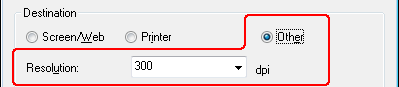 Če želite spremeniti ločljivost, najprej izberite Other kot nastavitev Destination.