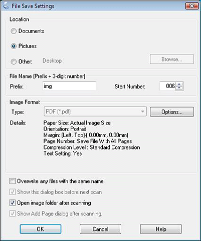Določite potrebne nastavitve v zvezi s shranjevanjem datotek in nato kliknite OK.